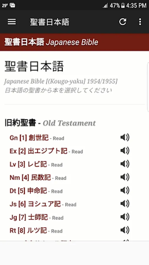 Bible-Japanese Bible -Bible in Japanese (Kougo-Yakushima). Enjoy this Bible application with free android, which includes Old Testament and New Testament in Japanese text and audio version.