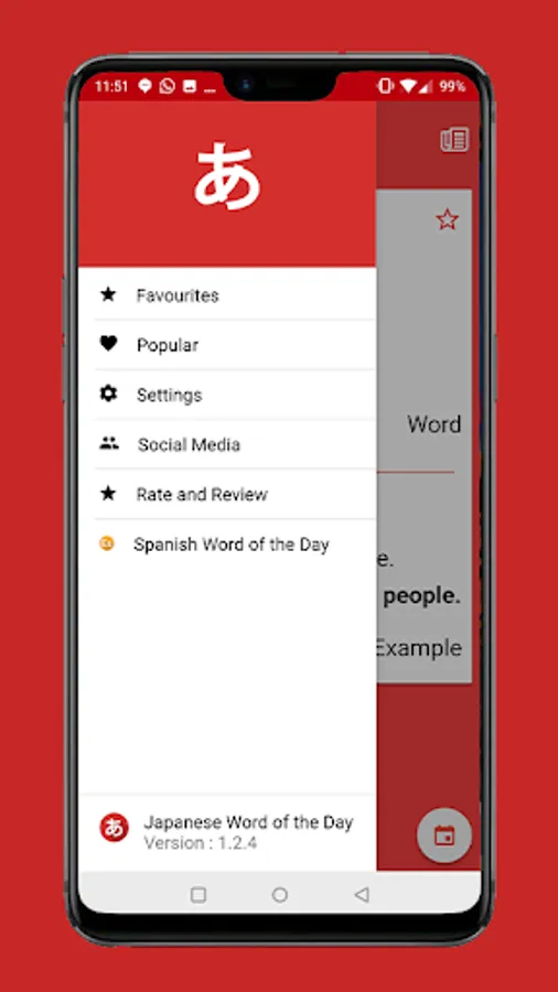 Learn a word a day from Japanese! This app will allows you to set a notification time to get a reminder for today's word. we have you covered as we update a new word daily at 5:30 AM (GMT).