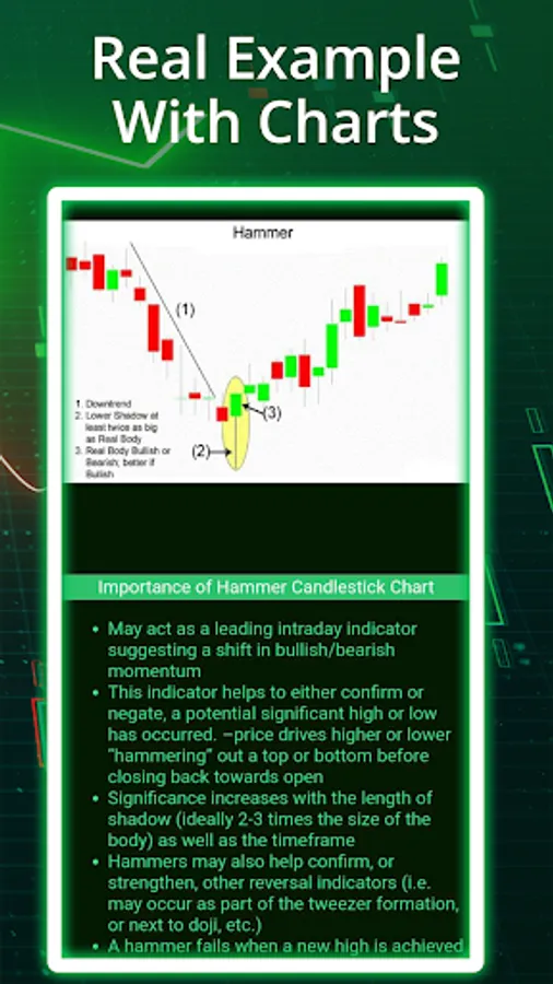 • Easy to read the text and clear image for each candlestick name & pattern.
