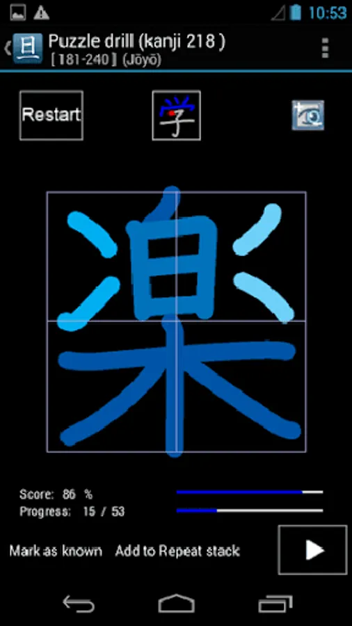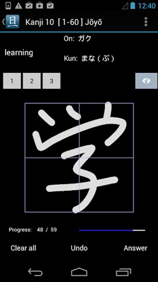 A study tool to memorize Japanese kanji, radicals (bushu) and primitive elements.