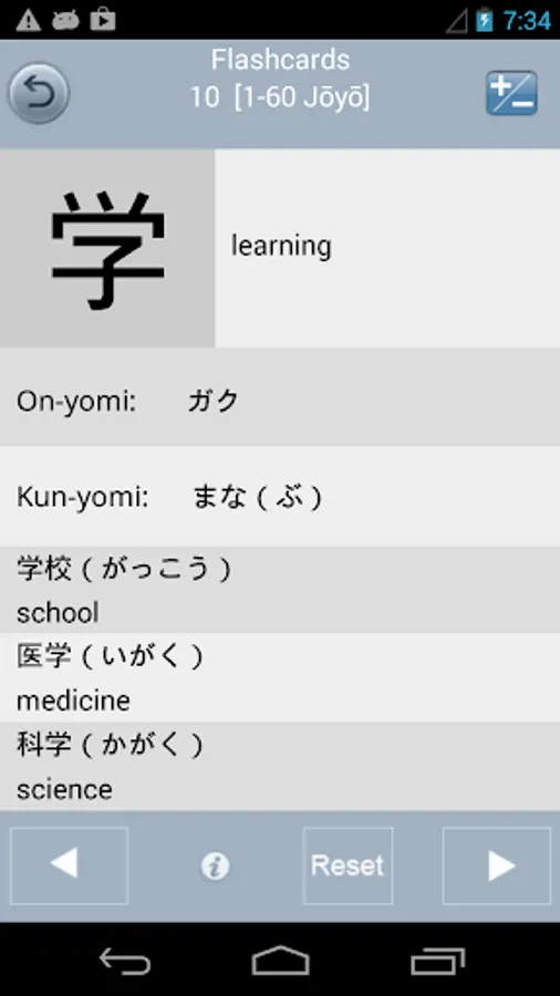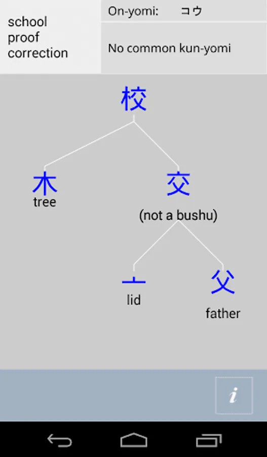 * The tool features ten multiple choice drills covering meanings, On-yomi (Chinese readings), Kun-yomi (Japanese readings), radicals, and elements.