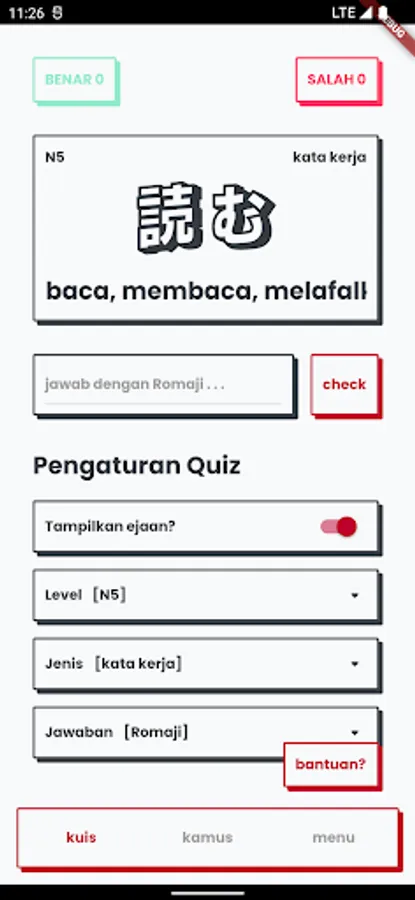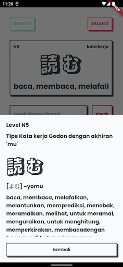 The learning model used is by answering quizzes. The user will be asked to answer the meaning or how to read the words displayed.