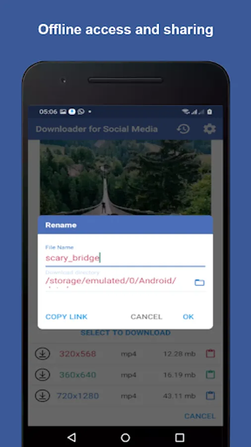 Download videos and GIFs from your favorite social networking platforms (Facebook, Instagram, and Twitter) in just three simple steps: 1. Share/Copy, 2. Download and 3. Save.