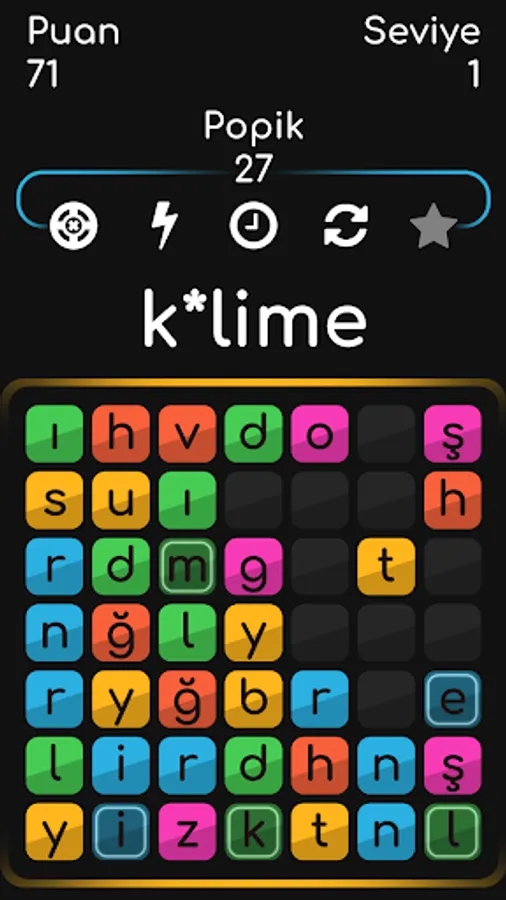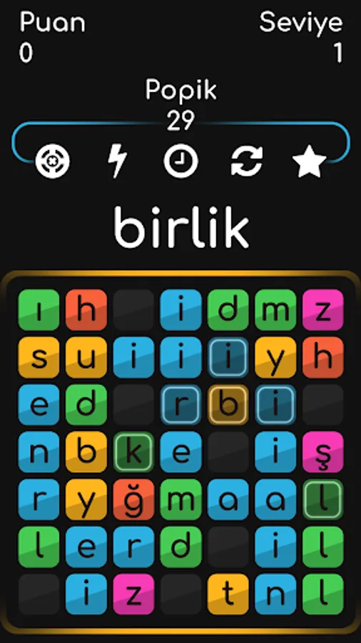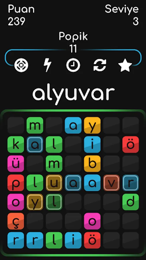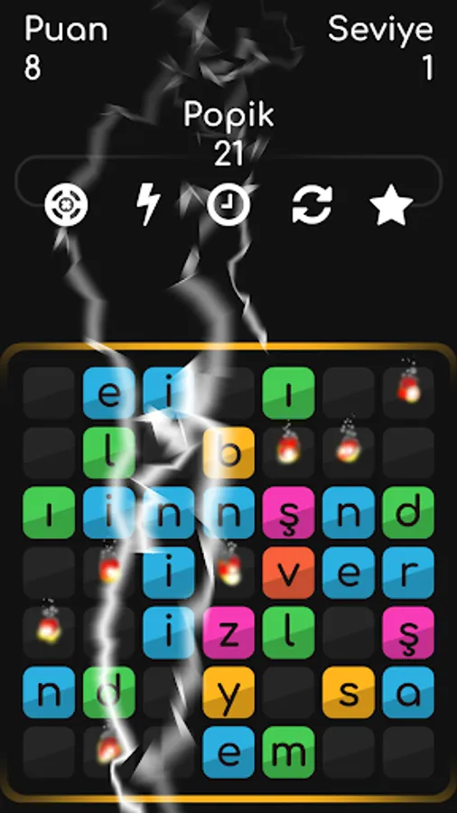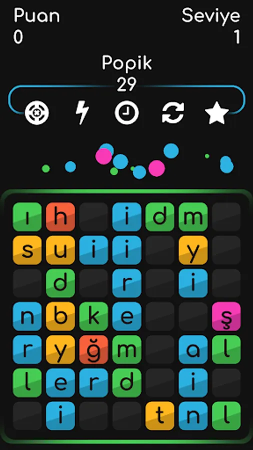 Poptilo touch and is a fun new word game played with action. 7x7 has an area in the game, the letters appear in this area. The player must write as many words from the letters completely invade the area. Increases in the level of 100 points and floors and letters out faster.