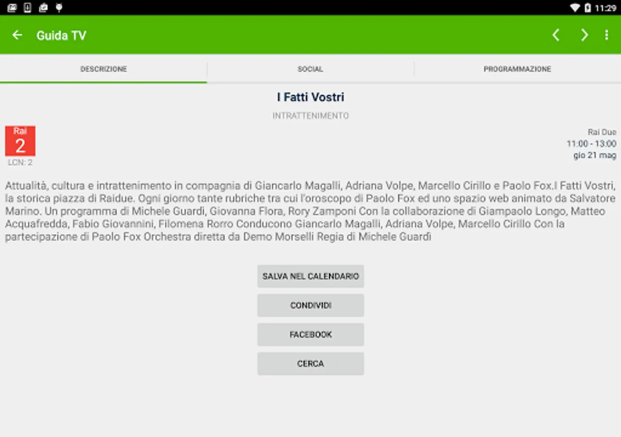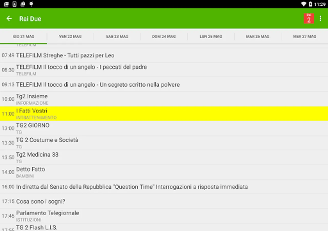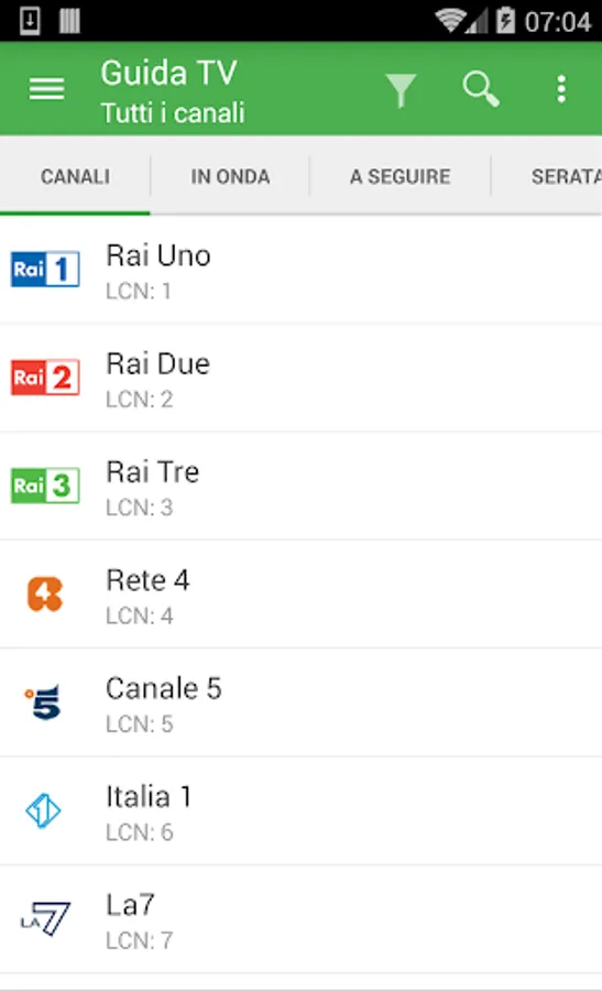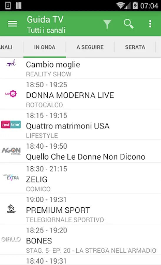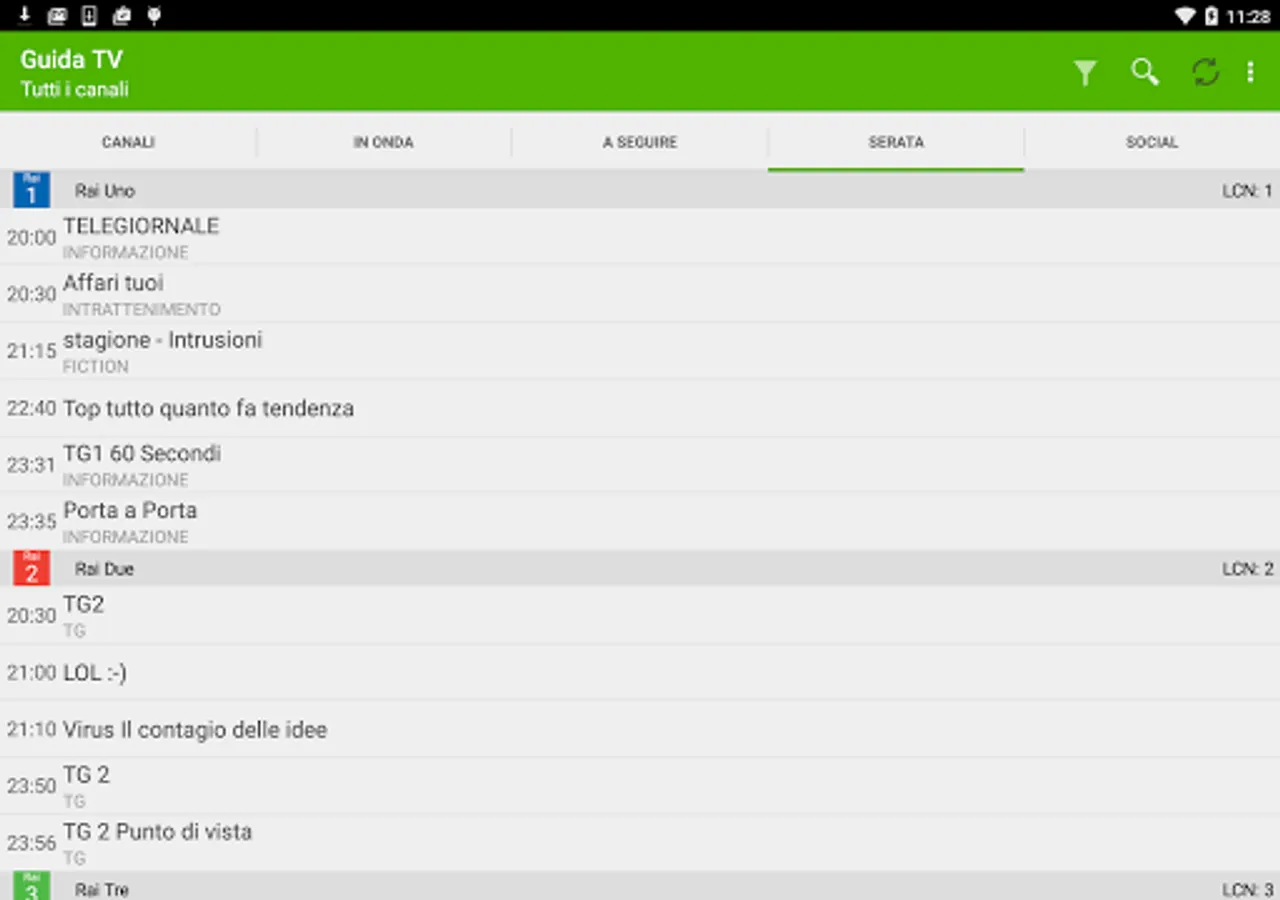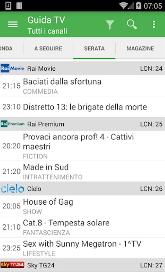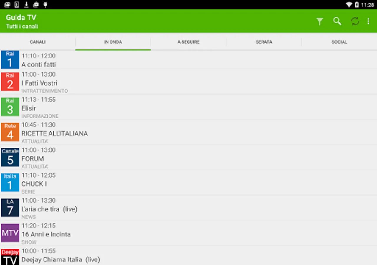 * Fasce orarie: easily see what's on TV on morning, afternoon or any moment of the day