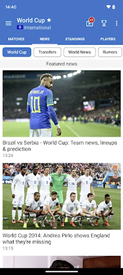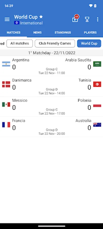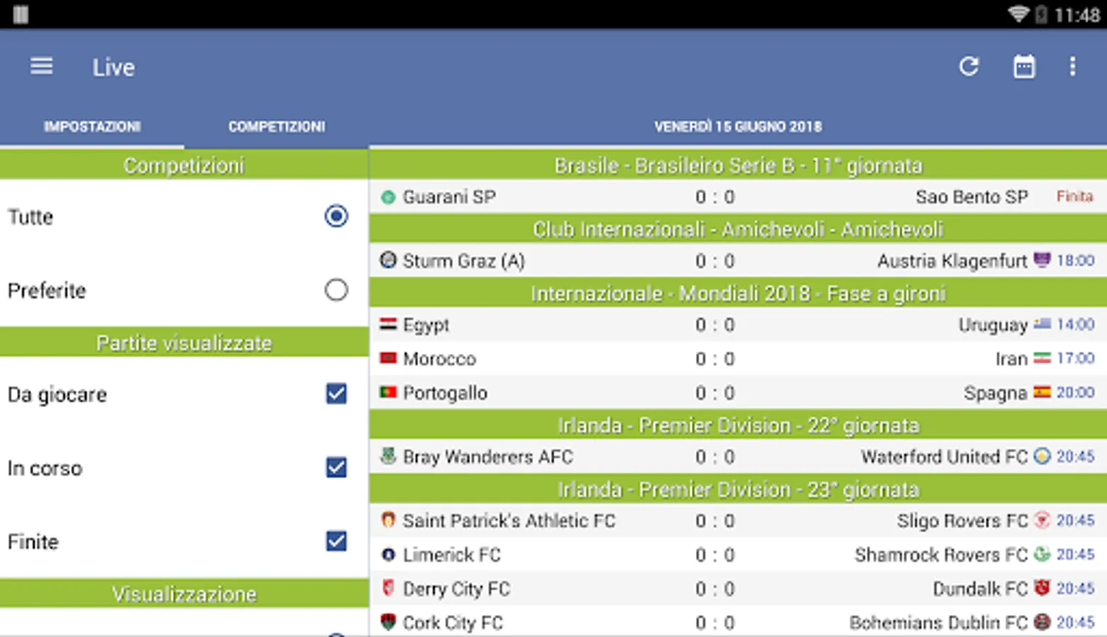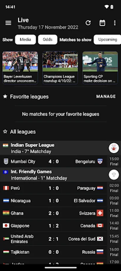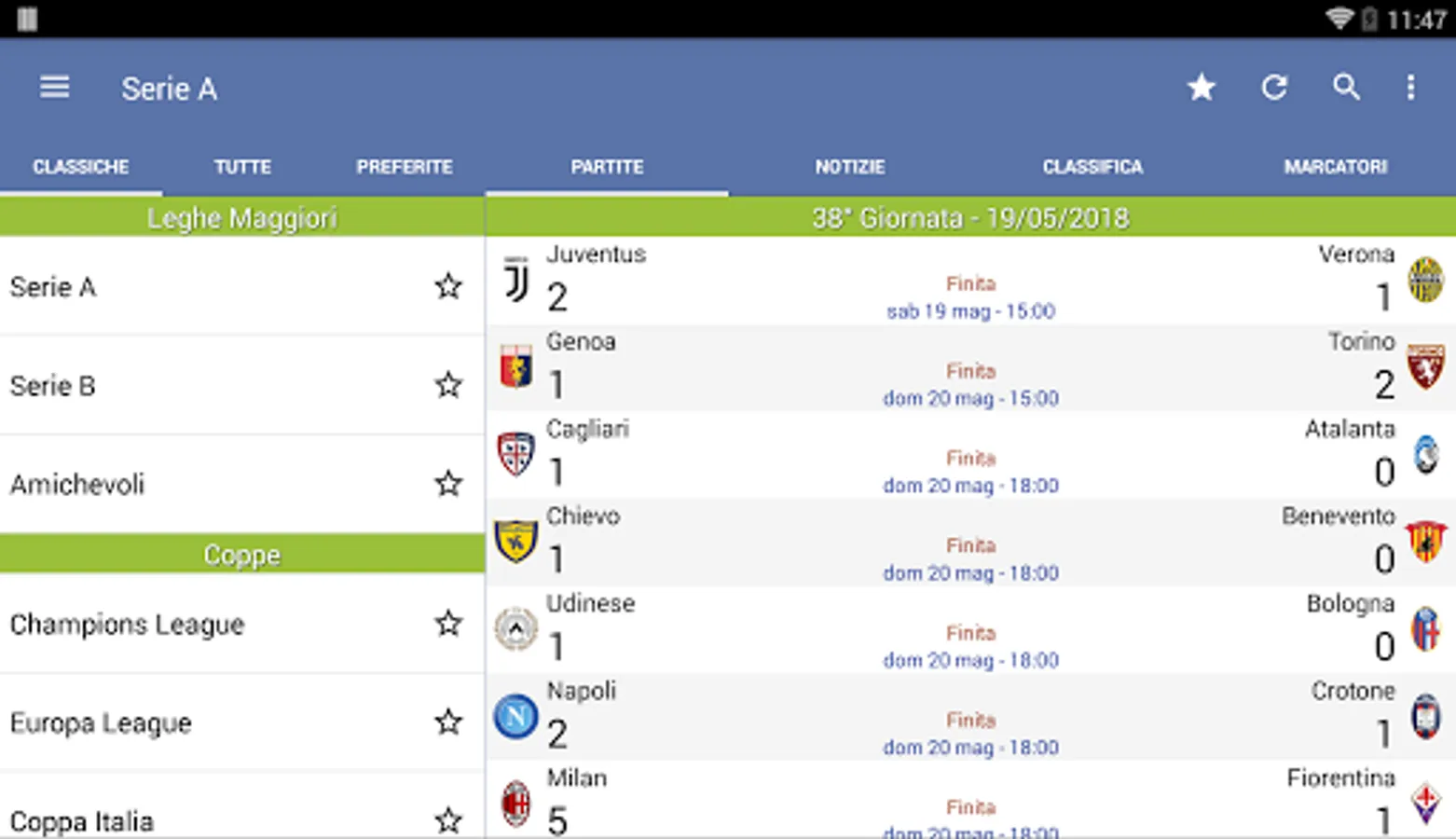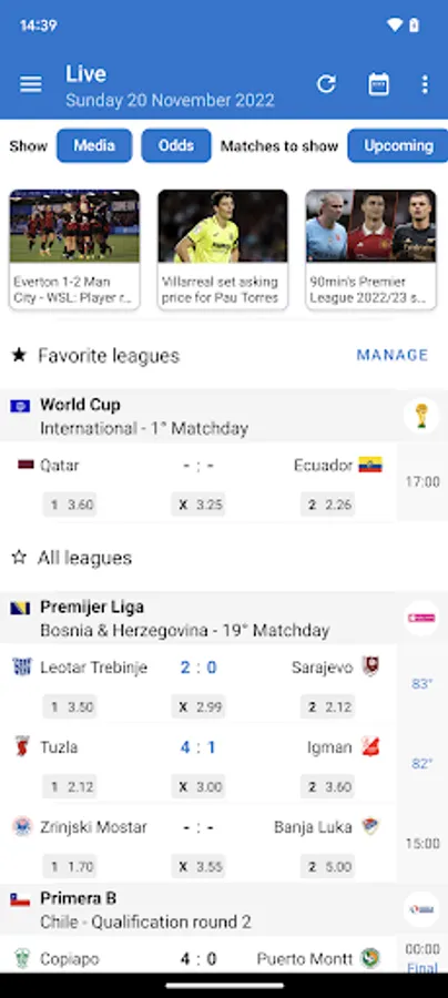 With real time updates and notifications you can always receive the latest informations about your favorite teams and leagues.