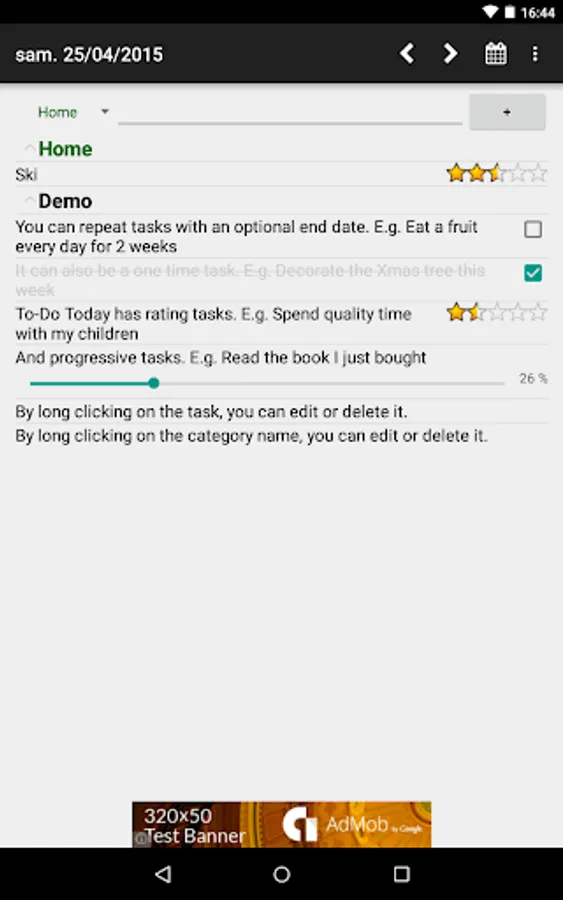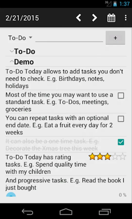 * Add tasks with progress percentage (like reading a book, a several days project)