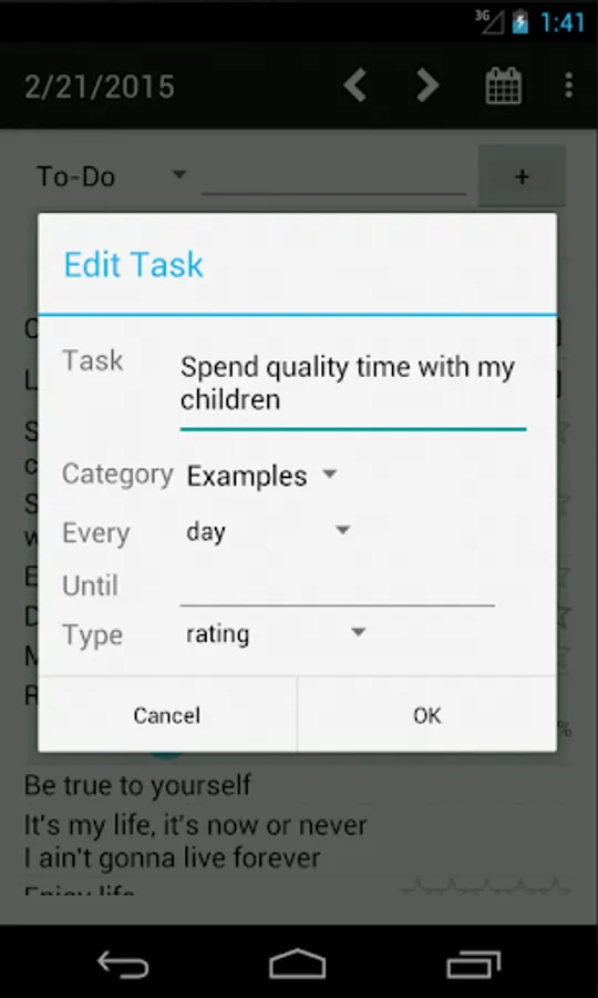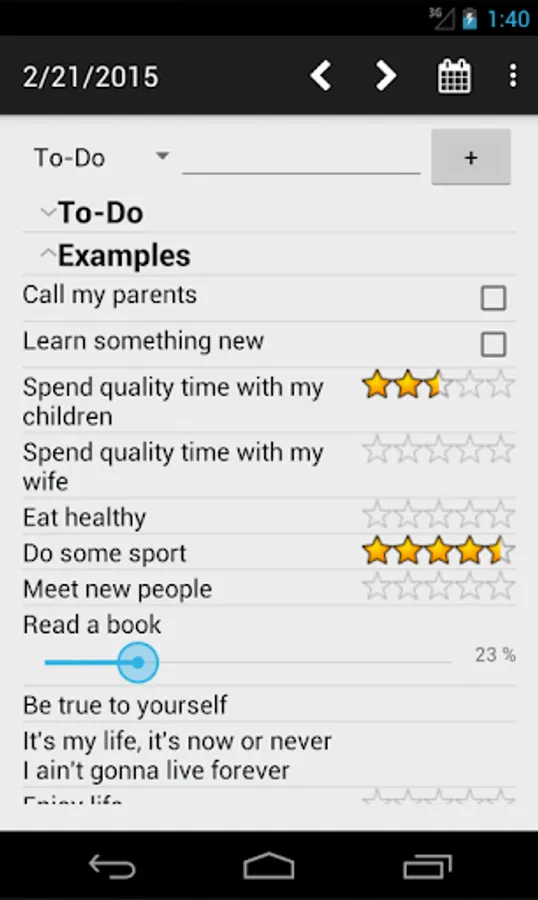 * Add tasks with rating, 1 to 5 stars (like spend time with my kids)