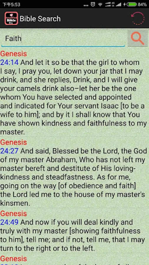 Bible comes with an advanced search feature