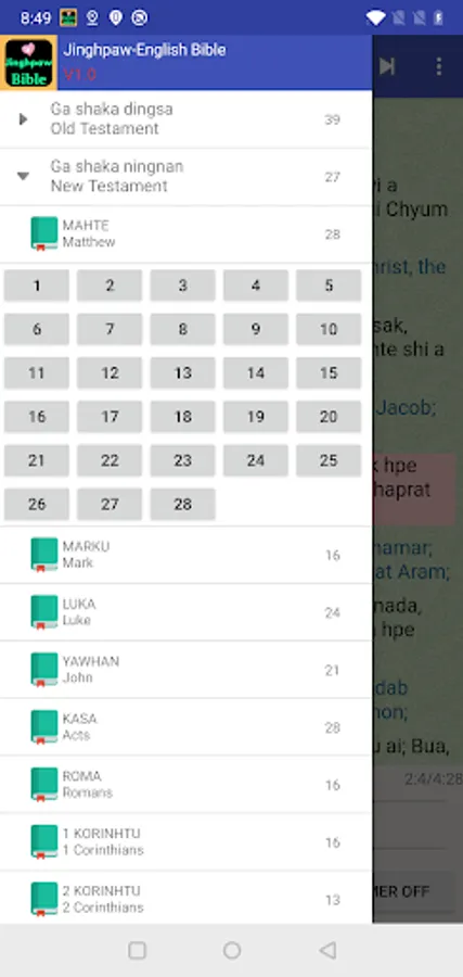 We are pleased to offer Kachin Jinghpaw and Tedim Bible for your android devices. Offered side by side with KJV/NIV/WEB English version, utilizing the power of android device for Indonesian Bahasa language speaking community in Myanmar and in the world.