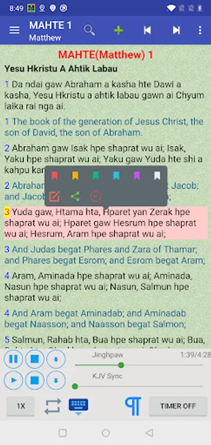 Kachin Jinghpaw and Tedim languages Holy Bible audio mp3, with English Old and New Testament, Concordance and mp3 Audio.