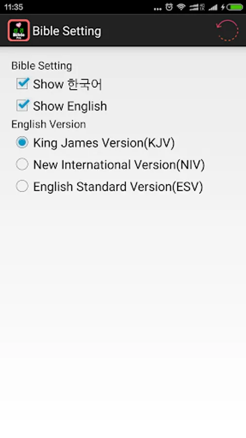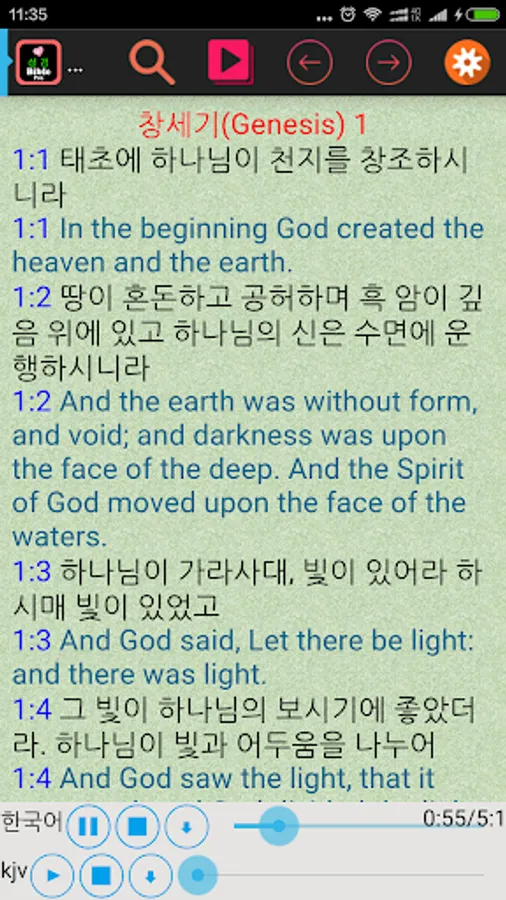 We are pleased to offer Korean Bible for your android devices. Offered side by side with KJV/NIV/WEB English version, utilizing the power of android device for Korean speaking community in Korea.