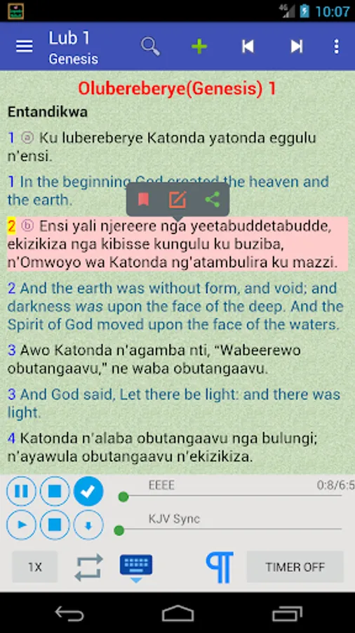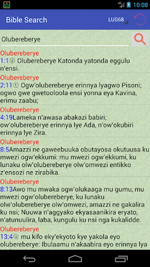 We are pleased to offer Luganda (Ganda) English Bible for your android devices. Offered side by side with KJV/NIV/WEB English version, utilizing the power of android device for Luganda (Ganda) language speaking community in Uganda and in Africa.