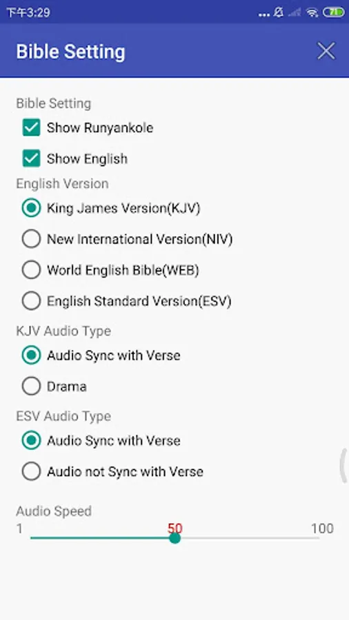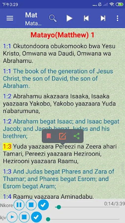 We are pleased to offer Runyankole Bible for your android devices. Offered side by side with KJV/NIV/WEB English version,utilizing the power of android device for Runyankole speaking community.