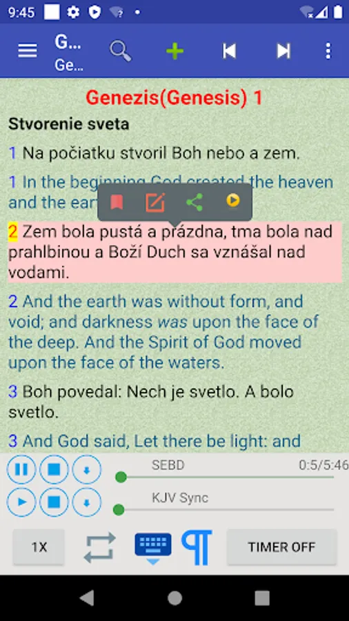 Starý zákonWe are pleased to offer Slovak English Bible for your android devices. Offered side by side with KJV/NIV/WEB English version, utilizing the power of android device for Slovak language speaking community in Slovakia and in Europe.