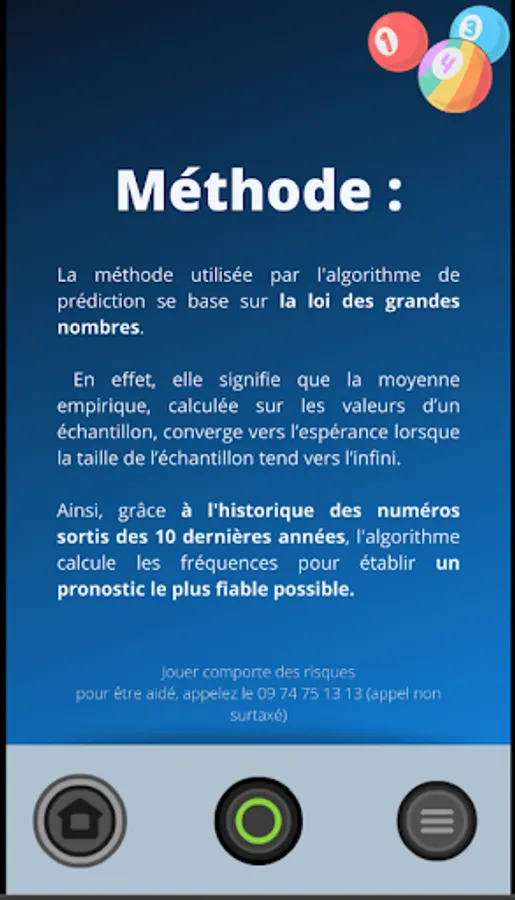 This application predicts future Lotto combinations using an algorithm based on the law of large numbers.