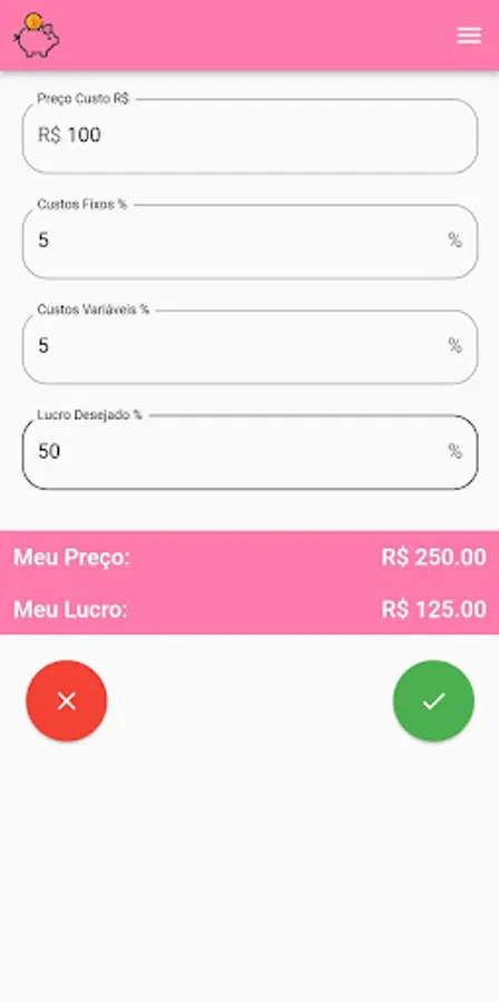 The application seeks to help you discover the correct value of your product, based on the percentage of profit you want to make on the product.
