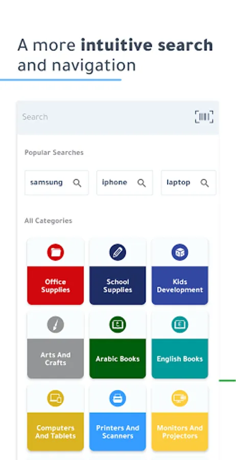 Arabic and English Books, Electronics, Smartphones and Accessories, Computers and its supplies, Video games, Kids Development, School Supplies, Office Supplies and Arts & Crafts