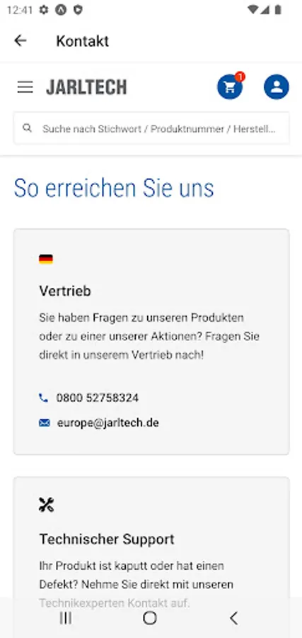 The Jarltech app offers you many practical and important functions so that you can go about your business relaxed, even when on-the-go. Via the app log directly into your personal account to reliably and quickly see individual prices, stock levels, etc.