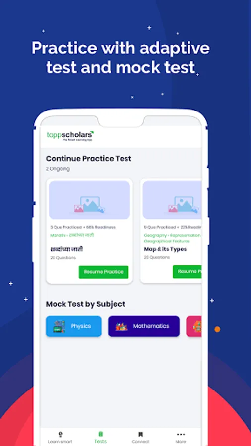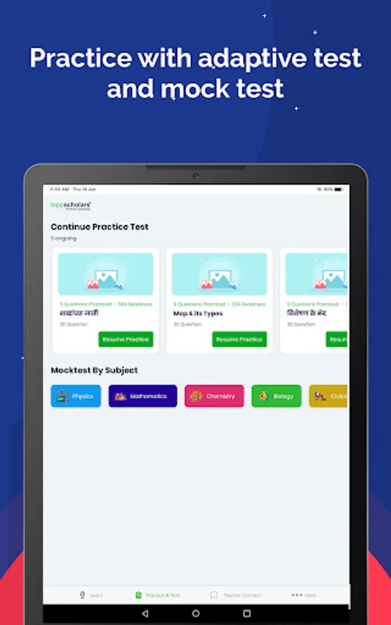 📝 Adaptive Practice tests are a quick assessment based on the students learning patterns and adapt to the student's ability to solve questions successfully, allowing students to assess themselves and know their strengths and areas that need improvement.