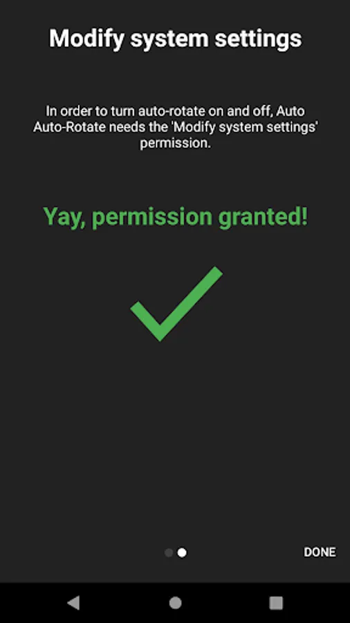 ▸ WRITE_SETTINGS to turn Android's auto-rotate on and off.