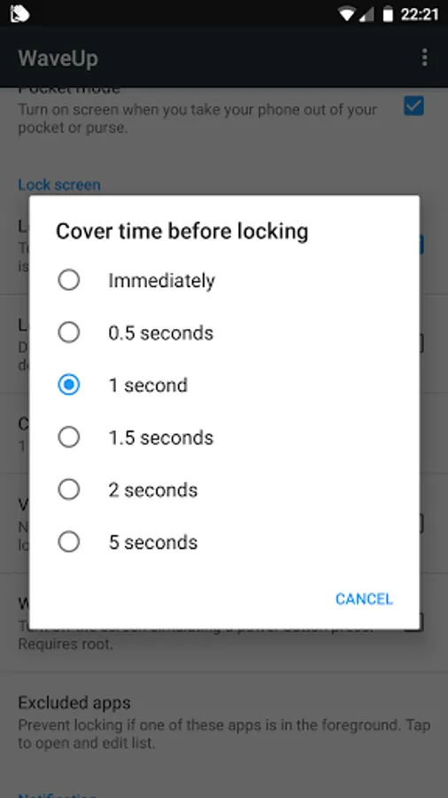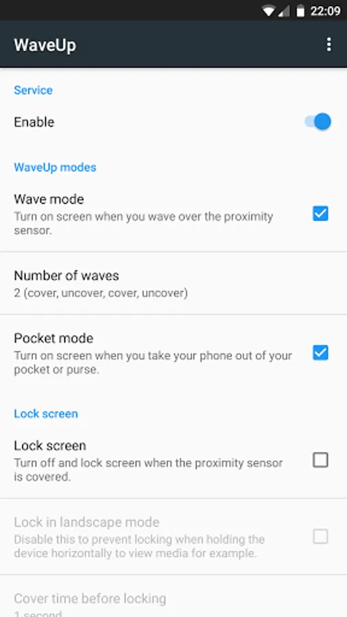 It also locks your phone and turns off the screen if you cover the proximity sensor for one second (or a specified time). This does not have a special name but can nonetheless be changed in the settings screen too. This is not enabled by default.