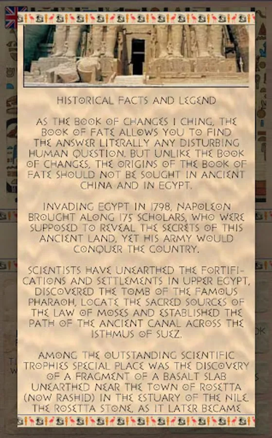 Legend has it that for the first time, this manuscript was discovered in excavations of Egyptian tombs. Since then, his help, and resorted to such great men as the Emperor of France, Napoleon Bonaparte, Princess Marie Louise and others of Royal blood are in possession of it by the will of fate and began to pass from generation to generation. So the wisdom of the ancient Egyptians have survived to the present day.