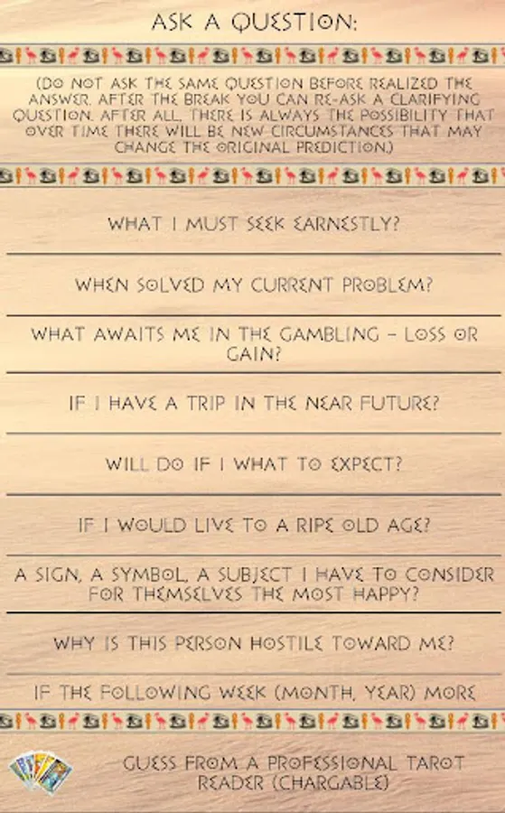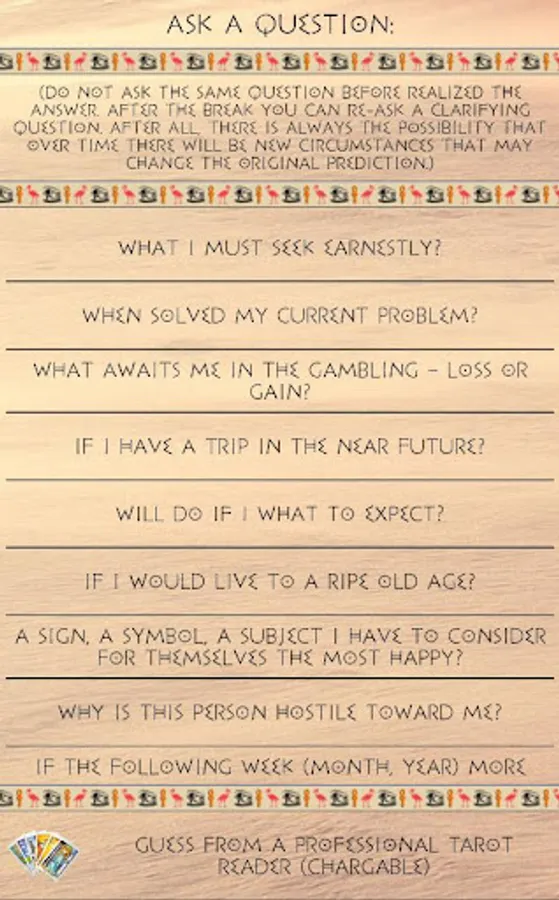 Mystical Oracle "Book of fate" is used interchangeably with the Tarot playing cards or Tarot divination to predict future events, helps to find the answer to your question and gives advice about what to do in a difficult situation.