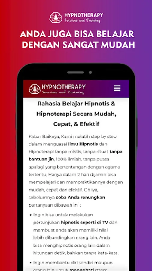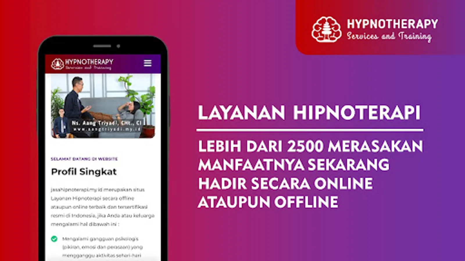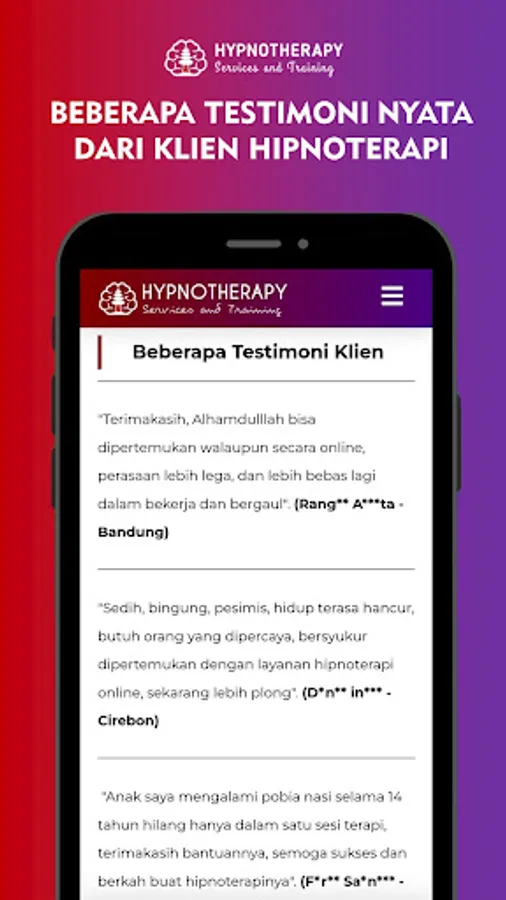 Jasahipnotherapy.my.id is the best offline or online Hypnotherapy Service site and officially certified in Indonesia, if you or your family experience the following: