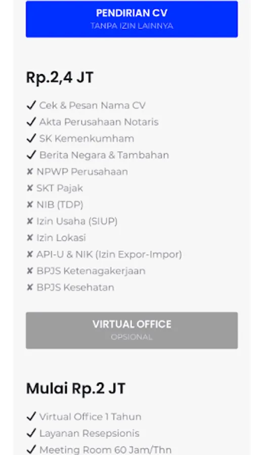 Please install the application (small size) and get more complete information and consult with us for the needs of establishing a PT, CV and business licensing that you are running (^_^)