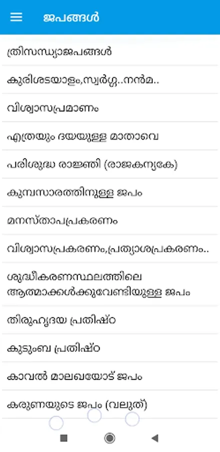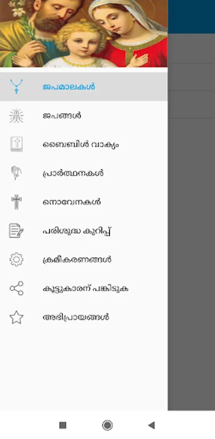 App contain rosary, powerful novenas, common prayers, and daily short prayers in Malayalam.