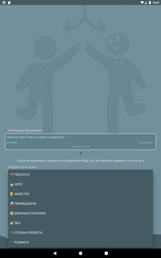 ● Wide choice of services by categories: services, cars, craftsmen, premises, housing, pets, joint projects and entertainment