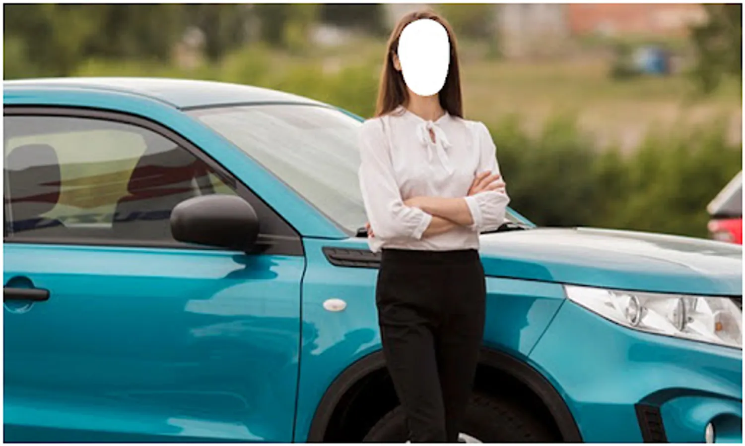 - Select your favorite Women With Car Photo Frames to fit photo on face.