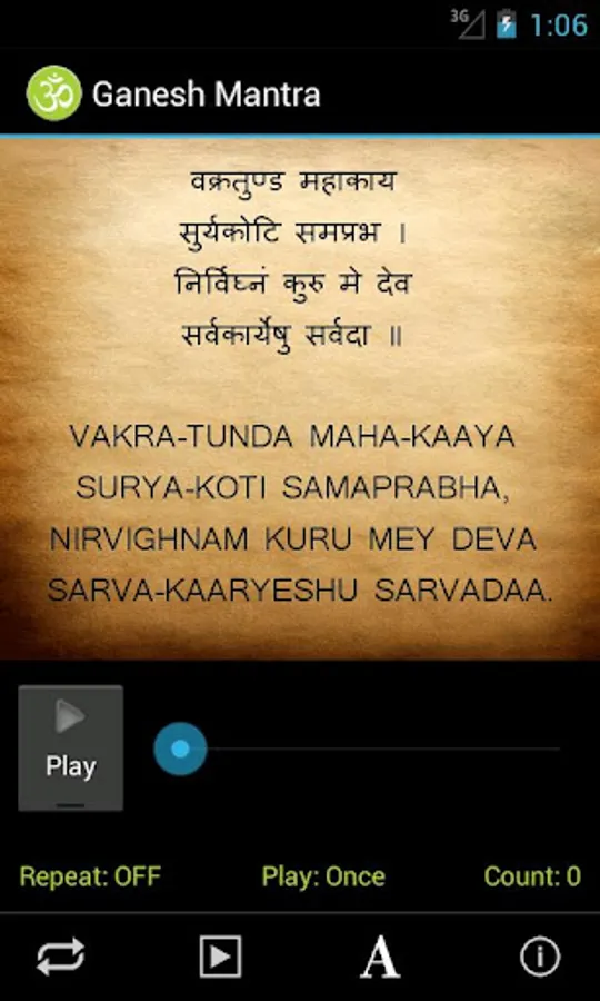 - Auto-Repeat feature to play Mantra 11, 21, 51 or 108 times