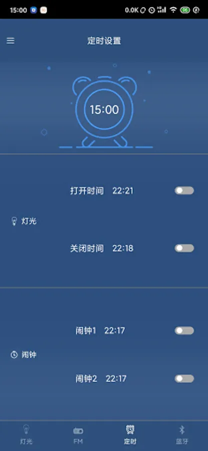 3. Timing: you can turn on and off the lights regularly and set the alarm clock