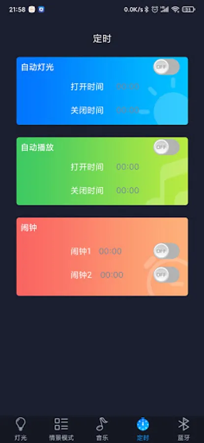 3. Timing: you can turn on and off lights, music and set alarm clock