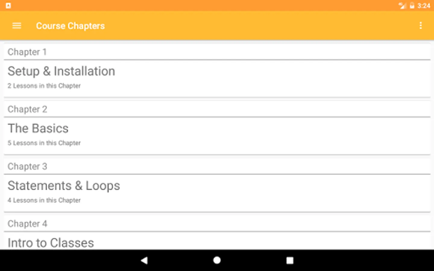 This app has five base chapters and 22 different lessons overall.