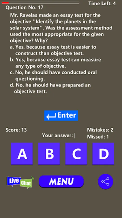 BLEPT Reviewer is an app that will help you pass the Board Licensure Examination for Professional Teachers (BLEPT). It contains hundreds of PROF ED and GEN ED questions as well as major test sets questions gathered from liable sources in the internet and from previous BLEPT Examination.