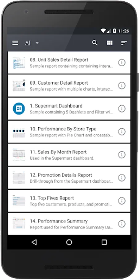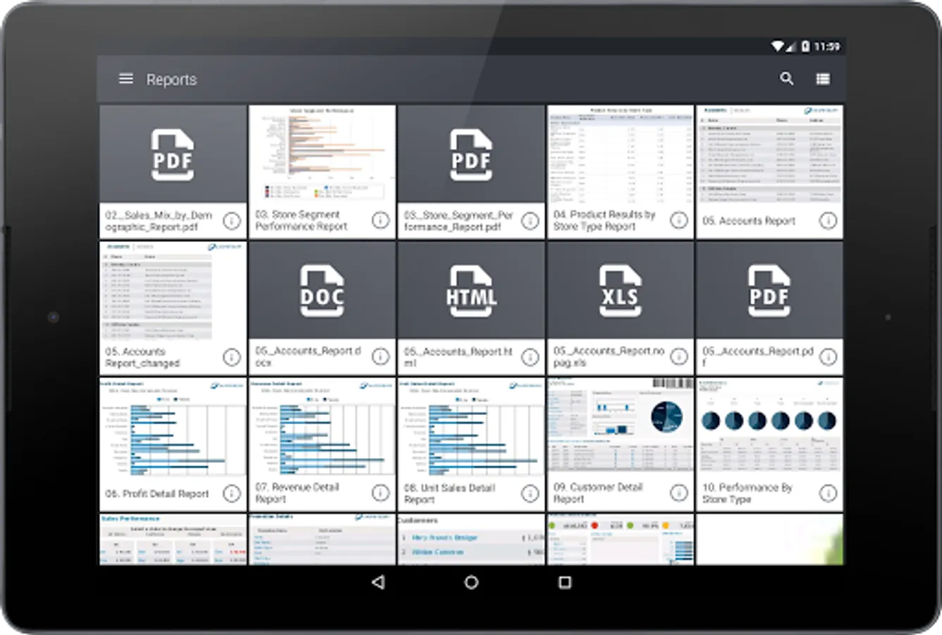 This app comes configured with access to our demo cloud environment so you can quickly try out the functionality of the application using our sample reports. Or, connect to your own server to view your own reports.