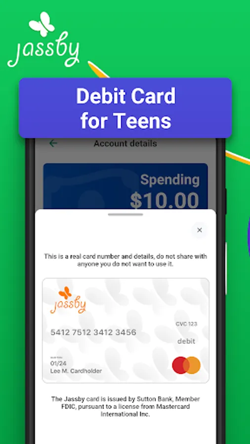 The Jassby Debit Card is designed to help your child learn financial literacy, add funds directly to their card and save money with no fees. You control the card from your phone and are notified of all transactions. Debit Cards can be used with parental supervision online or through contactless payment at any store that accepts Apple Pay.