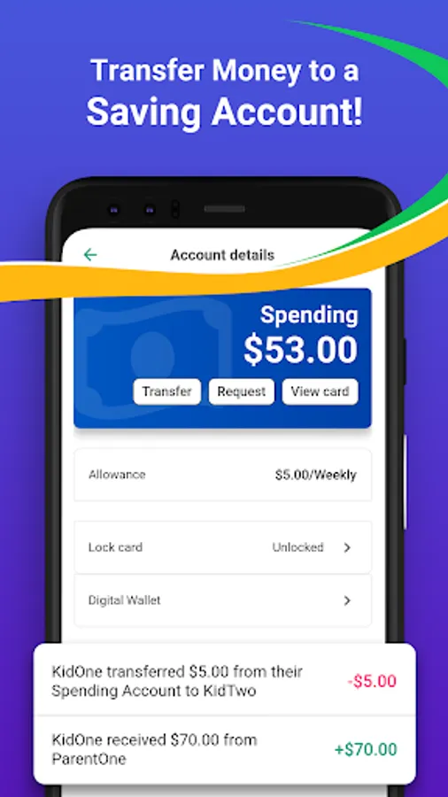 - An optional physical card and a digital debit card for kids, controlled by parents through their phones.