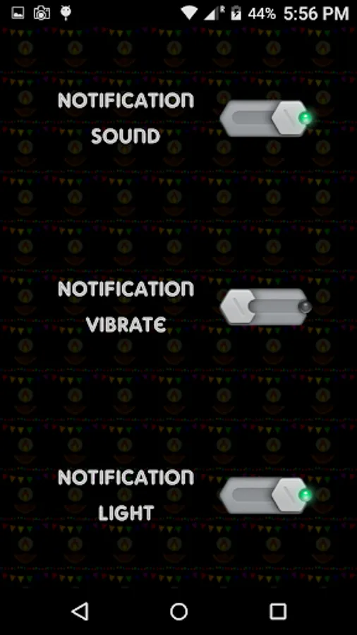 Settings for the notification are selective by Switching ON/OFF featuring to the Sound, Vibration and Light.