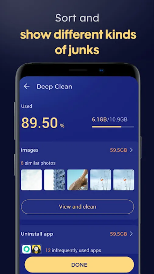 For very similar pictures or screenshots in your phone, you can quickly identify, scan and clean them up with one click.
