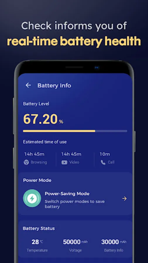 Beyond device cleanup, SmartClean also attends to your battery's health. Detect and inform you about the present battery situation, temperature state, and overall health condition of your battery.