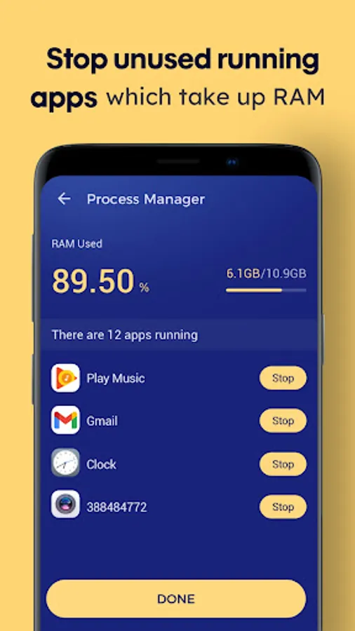 SmartClean enables you to know the active applications that are using up your device's RAM, providing you with real-time information on the usage status of your phone's apps.