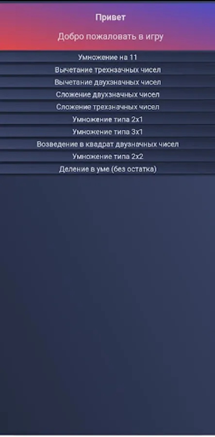 The main purpose of the application is to develop your skills in performing simple mathematical operations in your mind and increase the speed of your calculations.