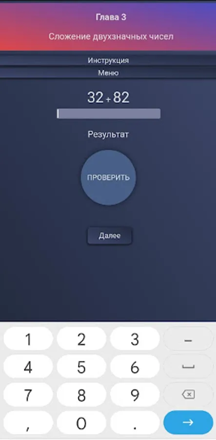 In general, the scheme of the program is simple. You enter, choose any lesson that interests you, see the instructions inside this lesson, and then test your abilities in the calculator offered for you.
