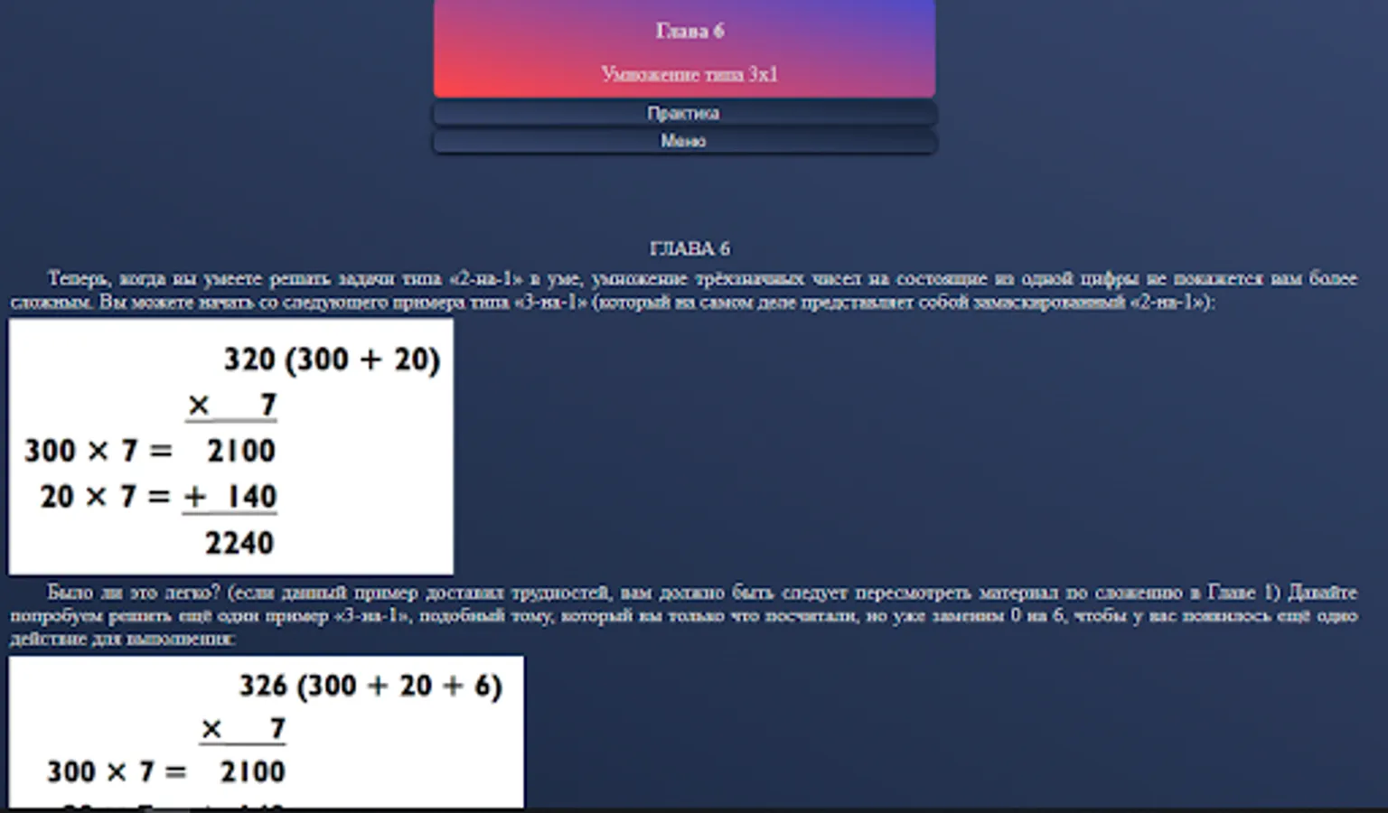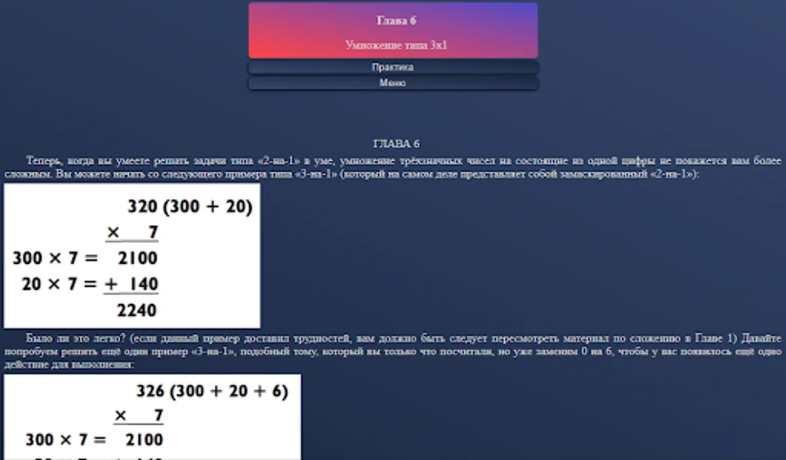 Solving any problem requires basic skills in addition, subtraction, multiplication and division. You will say that you learned this at school, but I will answer that in this application you will learn to count faster and learn new ways of calculating, and most importantly, you will be able to calculate in your mind those examples that you used a calculator to solve before!