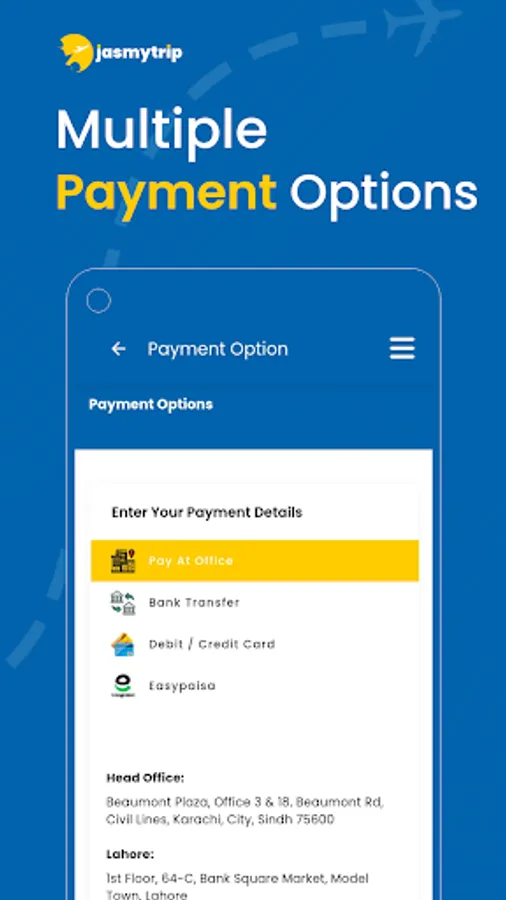 With dedicated customer support operating 24/7 and offices in 3 cities across Pakistan, Jasmytrip.com is there for you, whenever and wherever.