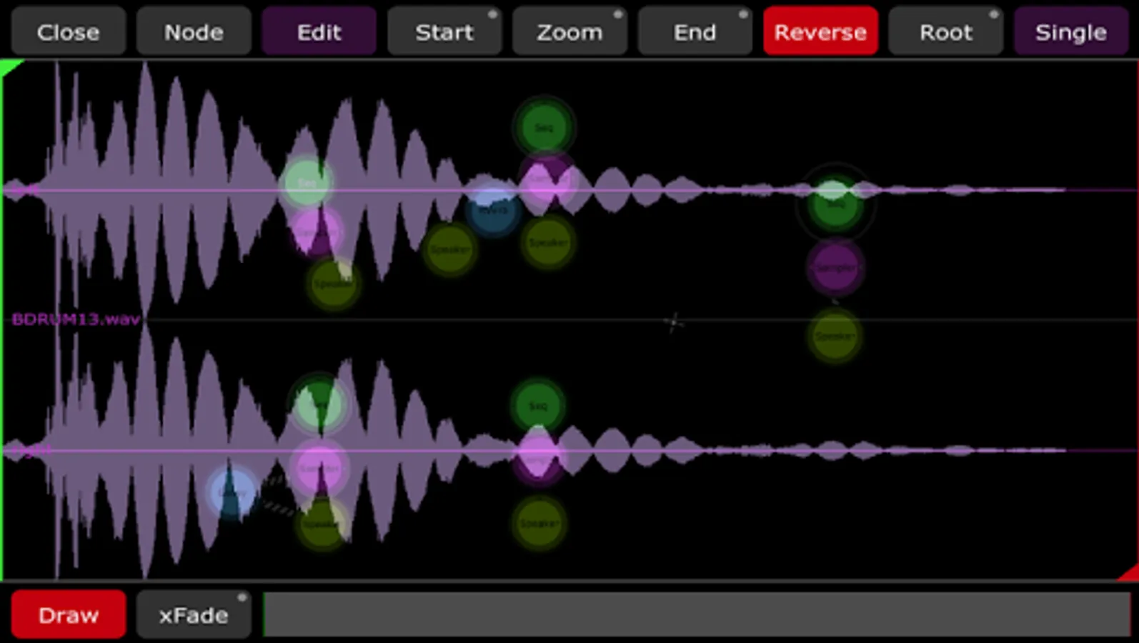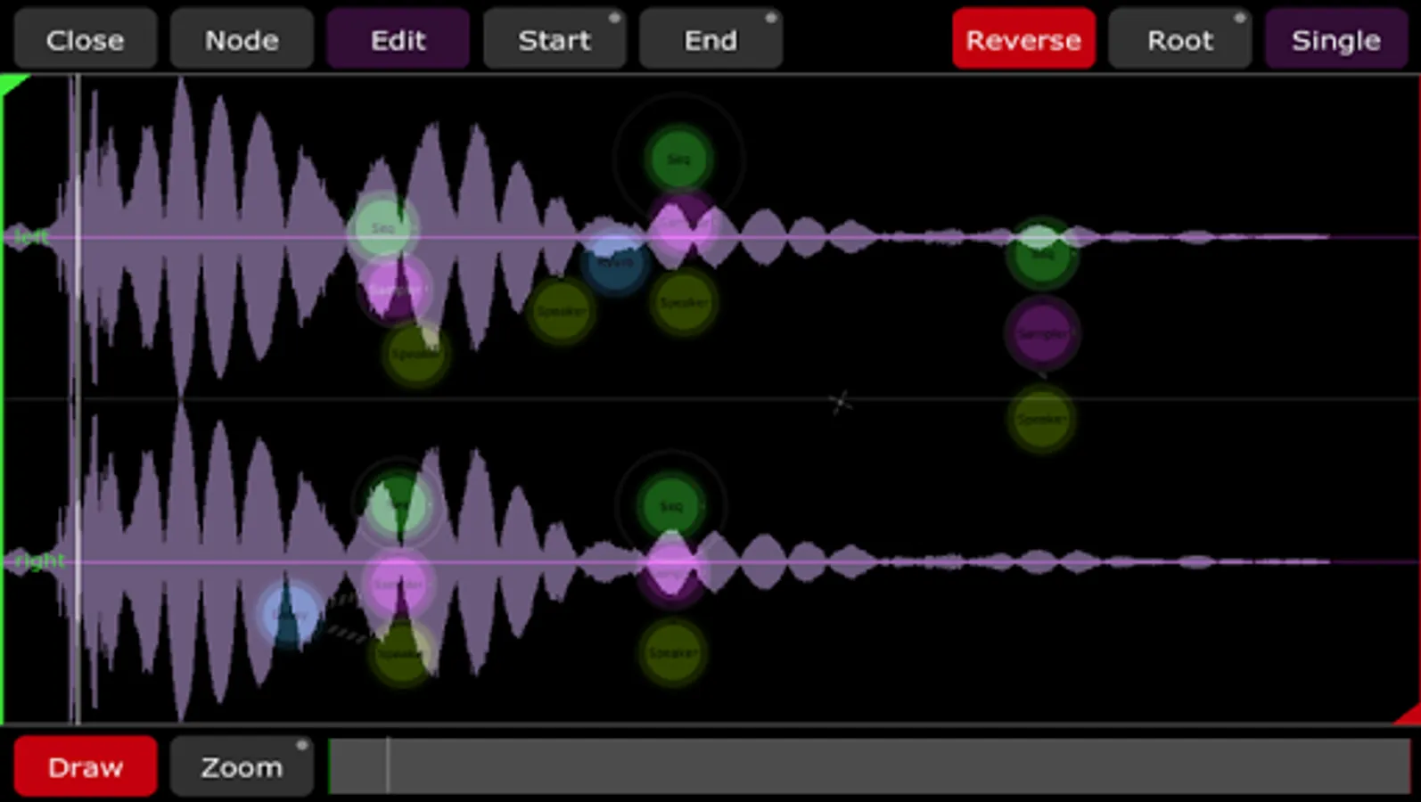 Connections can be created automatically by simply dragging nodes around, or manually. Each wire can be double-tapped to allow even more control of each connection.